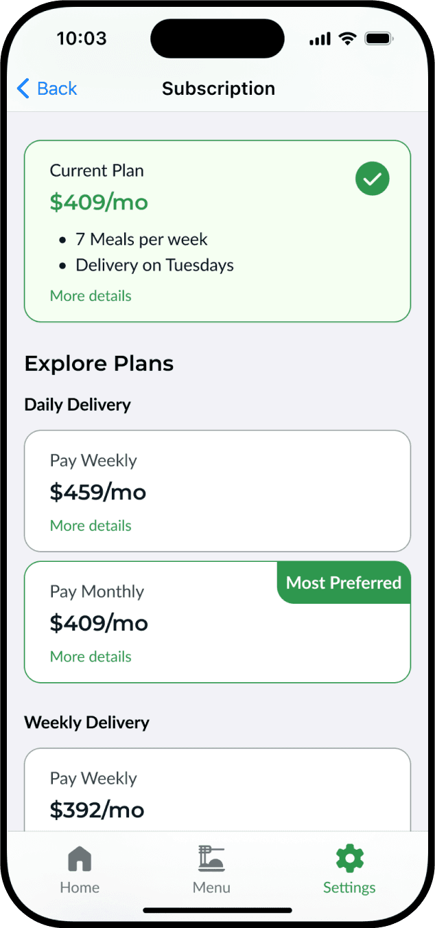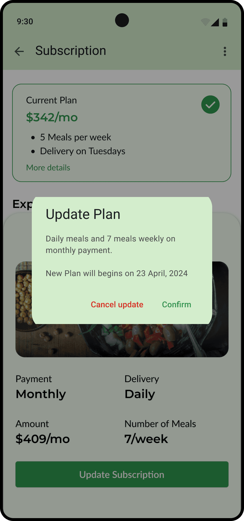 Ashfaaq focused on optimizing the app’s subscription system, aiming to create a seamless experience for users to easily locate and manage their subscription plans. His design allowed customers to quickly view their current plan and update it as needed, enhancing user control and convenience.