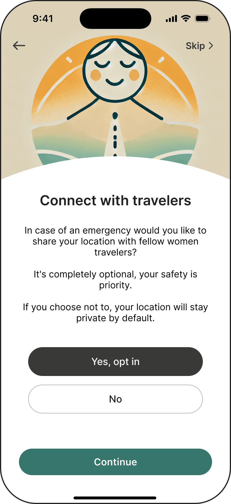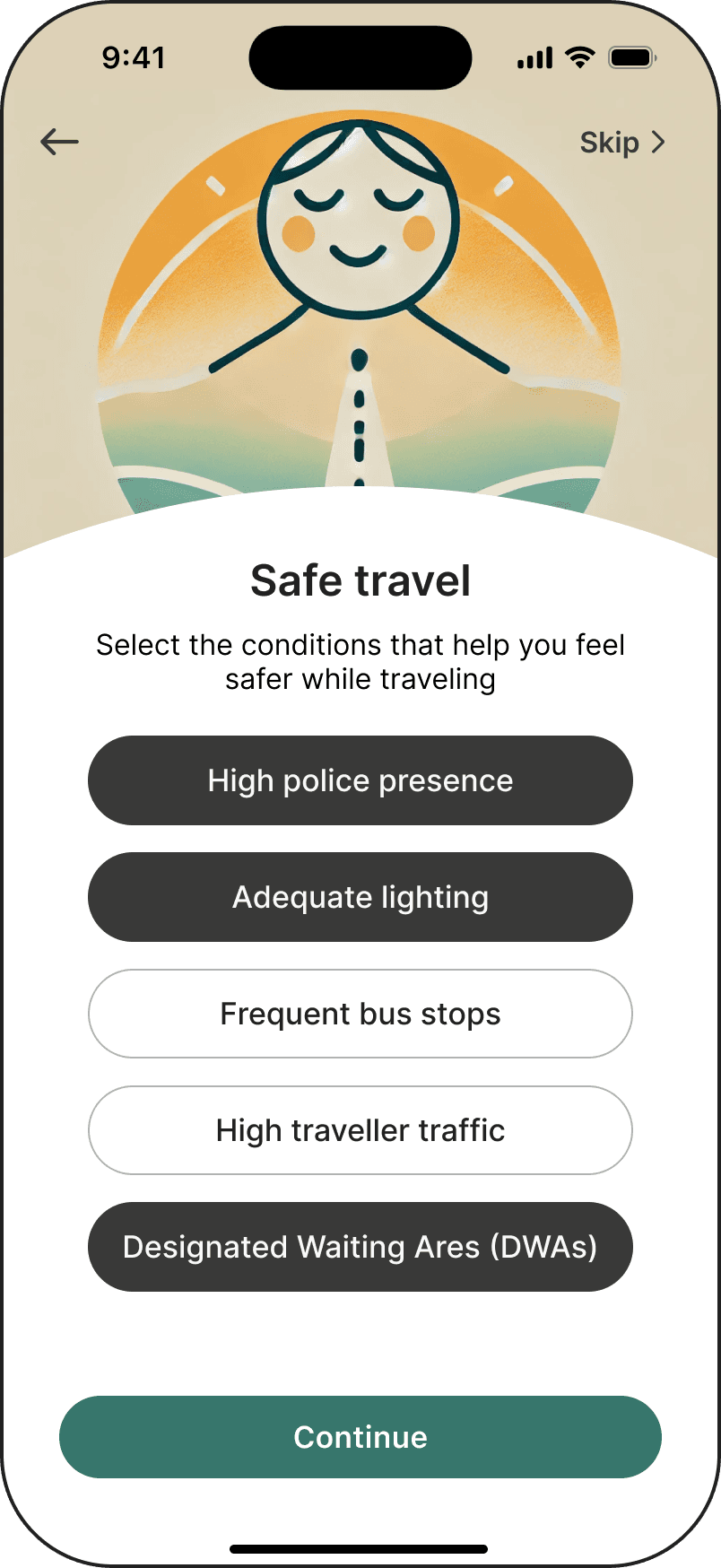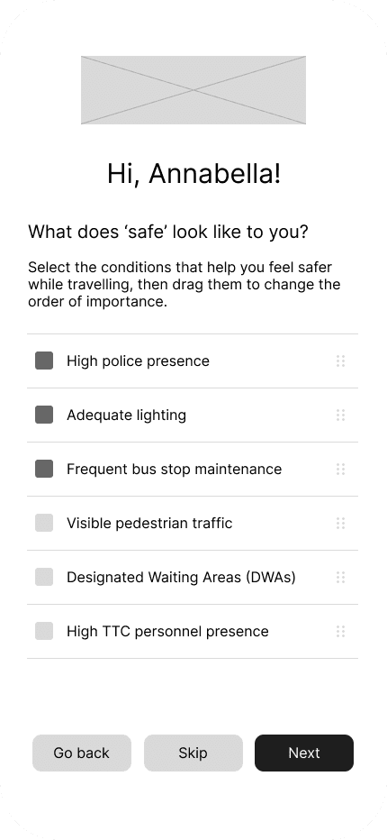 Personalized onboarding allowing users to freely select their personal safety criteria for routes.