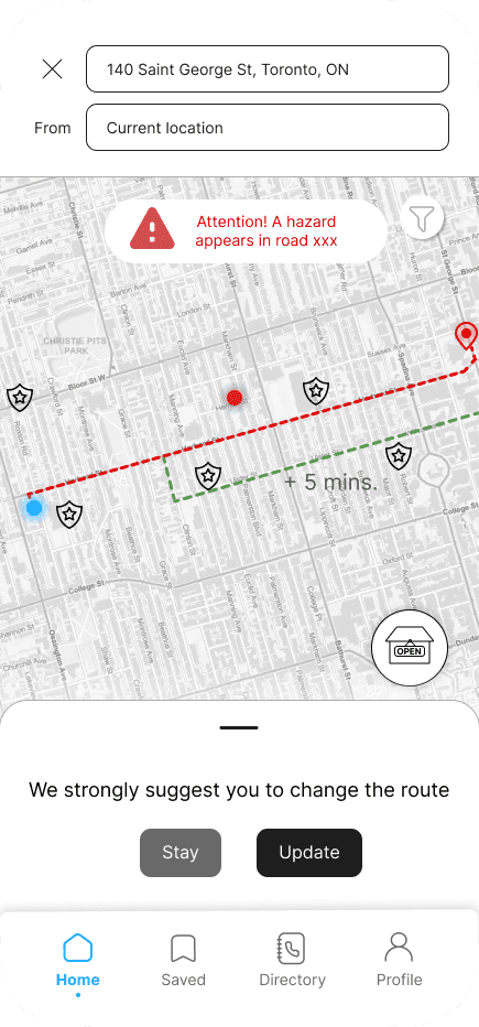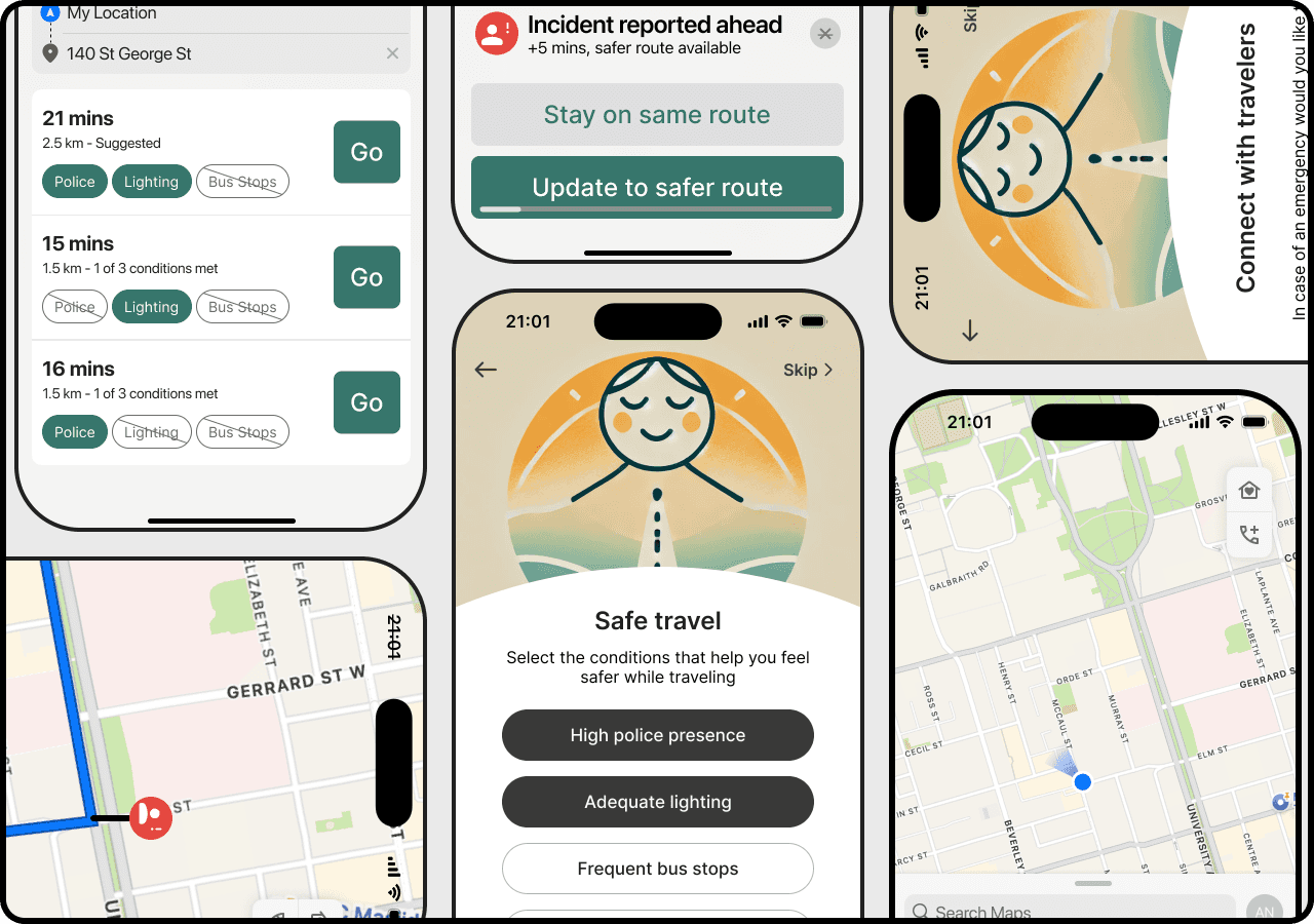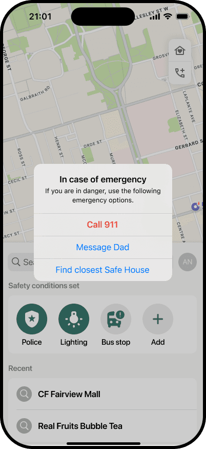 While "Fake Call" was initially considered a quick win, feedback from mentors highlighted that it didn’t directly support Annabella’s overall journey. As a result, the team pivoted to "Open 24 Hours," later renamed "Safe House," which was adopted as an additional feature to "Safe Route".