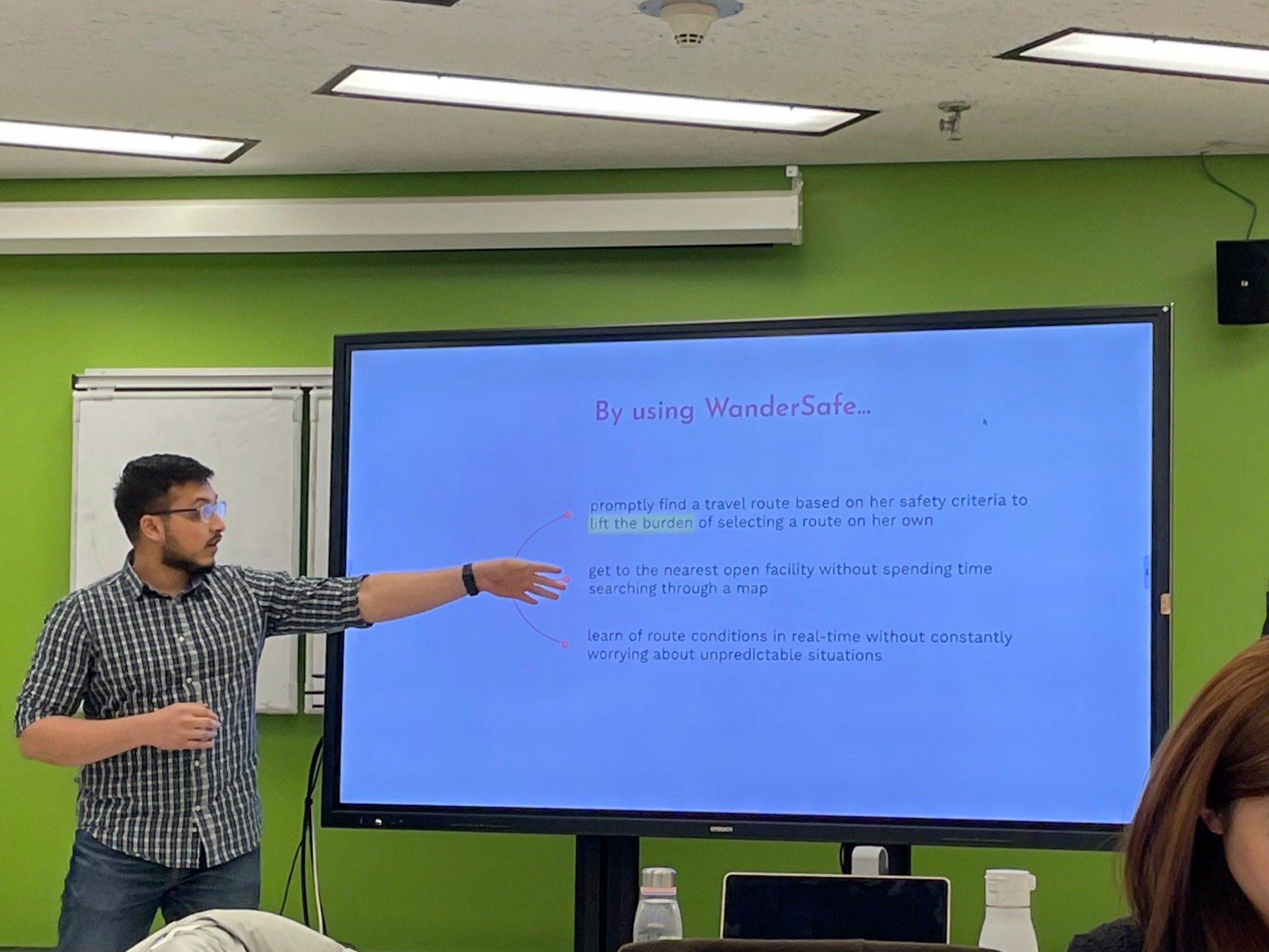 One of Ashfaaq’s standout ideas was the "Safe Route Finder", a feature designed to help users navigate to their destinations safely by providing real-time updates on road closures and alerts for potentially unsafe neighborhoods. Another concept was "Fake Call," enabling users like Annabella to simulate an incoming call with a loud ringtone, deterring potential threats by creating the impression of active communication.